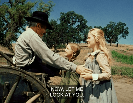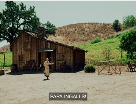 Caroline comes barreling out of the house, flailing and screaming, “Papa Ingalls!”