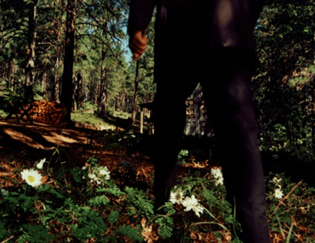 Anyways, we open on a man of late middle age, possibly, stomping wildflowers in the woods.