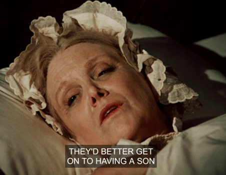 Grandma Laura proceeds to rant, albeit weakly, that Charles and Caroline have to keep poppin’ babies out till they have a son to carry on the family name.