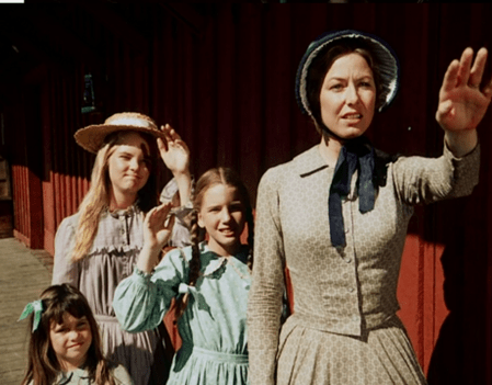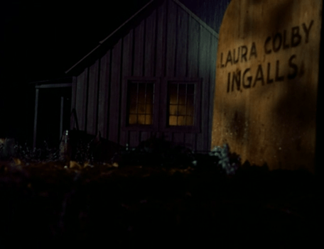 Laura, who loves to play the nagging mother to Carrie, comes out of the Little House and yells at her.