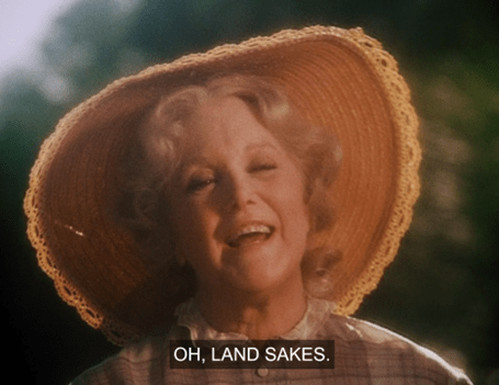 “Land’s sakes,” she says, or possibly “LAND sakes” – it’s hard to tell – “what time is it?”