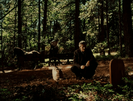 Charles finds Lansford kneeling, or rather squatting, by the grave.
