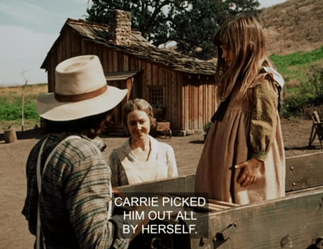 Pa goes over and he and Carrie have a hilarious little conversation about turkeys. Carrie is offended to learn male turkeys have a proper name, “Tom,” whilst females are generically called “hens.”