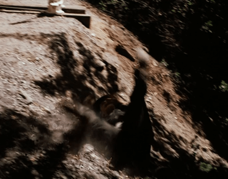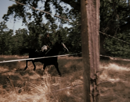 Well, Landon does really pull out the stops artistically here, as we see Bunny’s final run through the barbed wire fence . . . in slow motion.