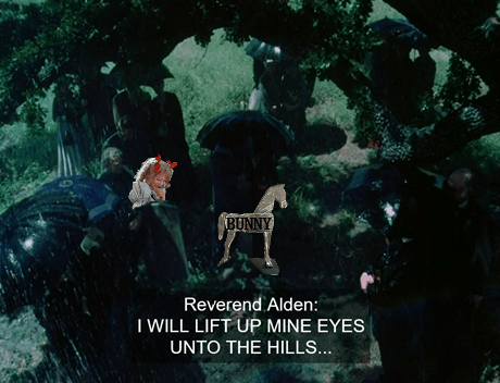 Sure enough, we cut to a field where Laura is riding Bunny around.
