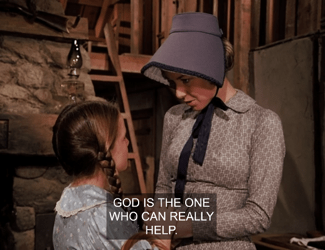 DAGNY: It wouldn’t be Little House without a tear-stained child’s face smooshed into a fuzzy flannel shirt.