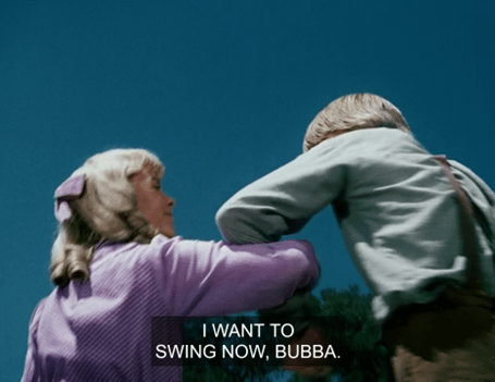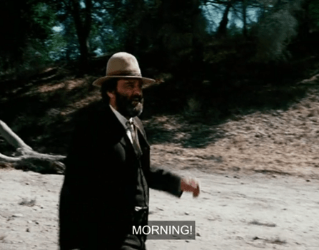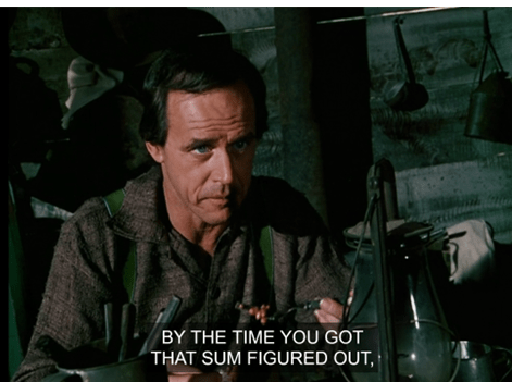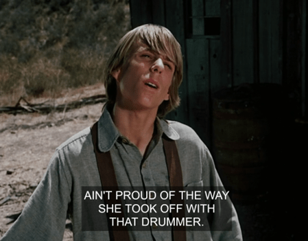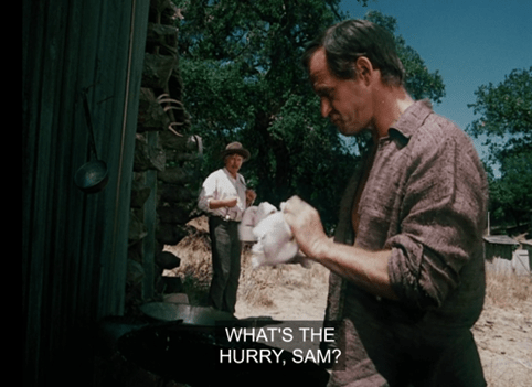 Anyways, here Geoffrey Lewis says, “George, Bubba, come on, the day’s a-wastin’.”