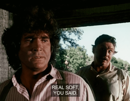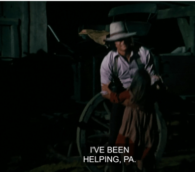 A big man with a gray mustache comes out of the house and says, “What’s the hurry, Sam?” He’s wearing a white shirt and pulling on his suspenders, and to me he looks more like a detective on a seventies cop show than a Little House character.