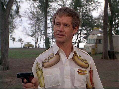 We see he is Geoffrey Lewis, an actor readers my age must have all known in one form or another, since he did bit parts in a zillion TV shows in the seventies, eighties and nineties (including the infamous Golden Girls episode “Empty Nests”) and had recurring parts on shows from Mama’s Family to Dawson’s Creek.