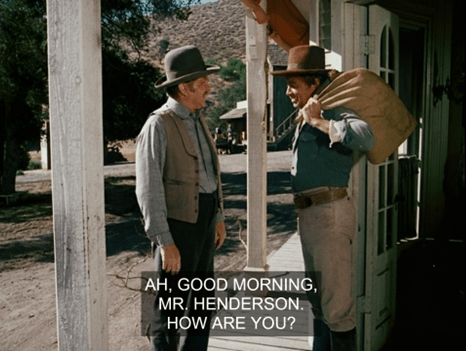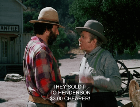 Sam points to the wagon then and says they’ll just take that wood. But Hanson says it’s already been sold to a Mr. Henderson. (Henry’s father?)