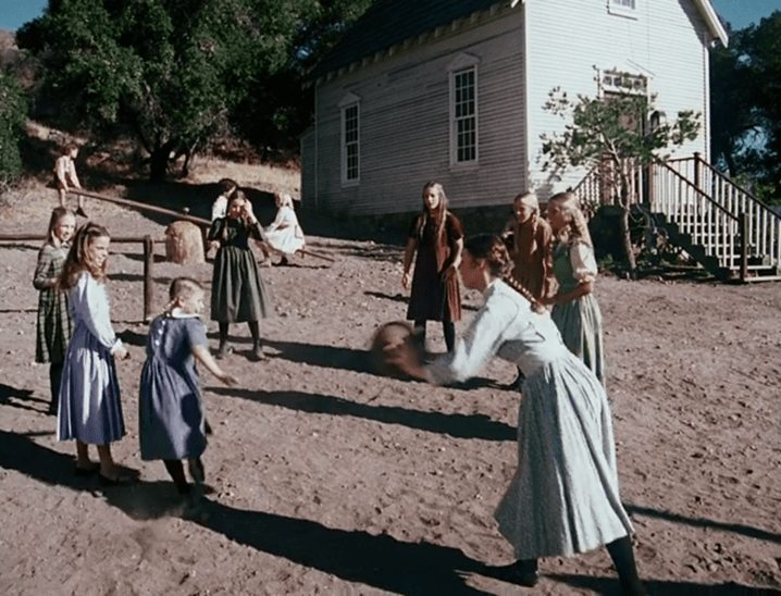 Meanwhile, Laura is playing some sort of variation of dodgeball where everyone stands in a circle. We’ll just call it “circle dodgeball.” (There are so many bizarre versions of dodgeball that I got bored reading about them and gave up.)