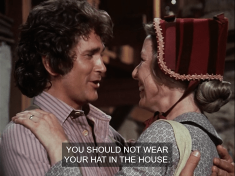 Willie protests that the feather made the hat perfect for Robin Hood, and Mrs. Oleson says, “Oh, well, I’ll feather YOU, young man!”