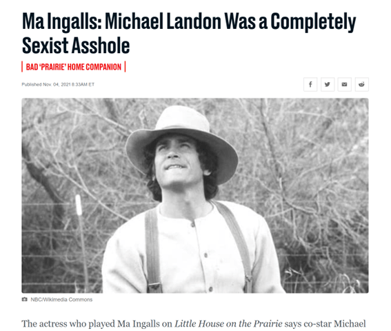 And the loudest screaming of all, of course, is the whinnying zebra laughter of Charles Ingalls.