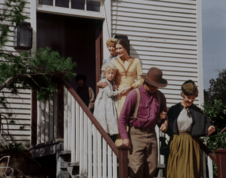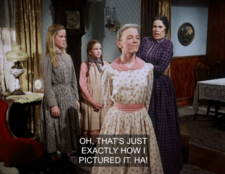 Anyways, the Ingallses stand around for a while, and Mary makes a dopey comment about how real life is better than fiction anytime. That’s complete bullshit, of course, but Sappy Pa eats it up.