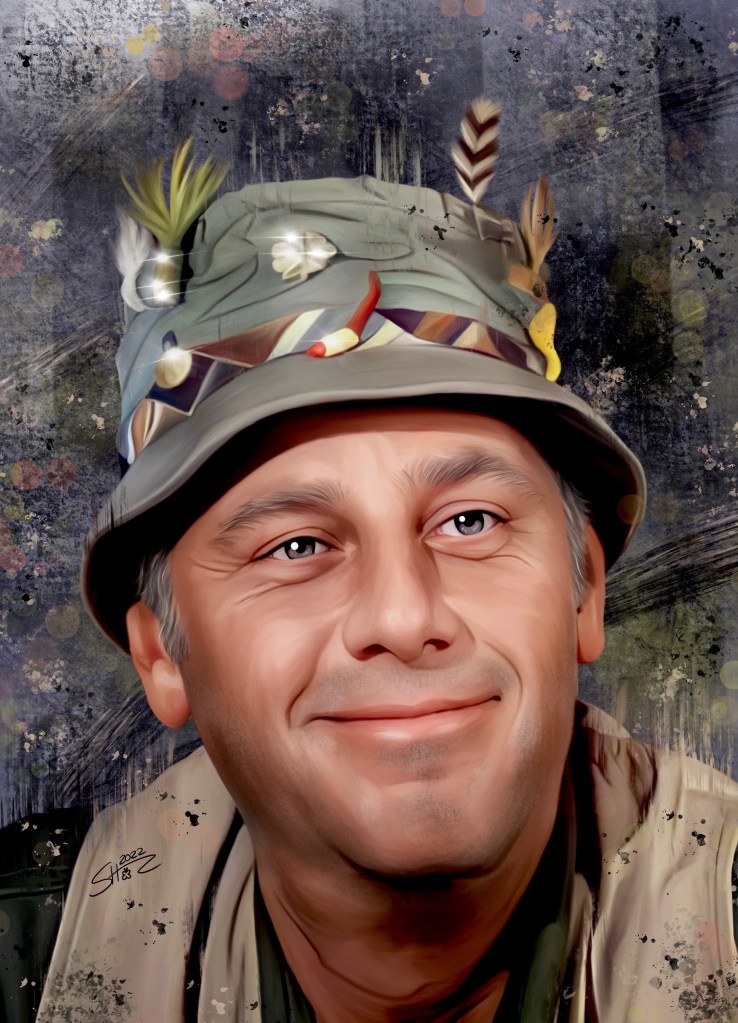 No, it isn’t Busby. It’s Willie, who’s wearing a lady’s hat with a huge feather plume on it.