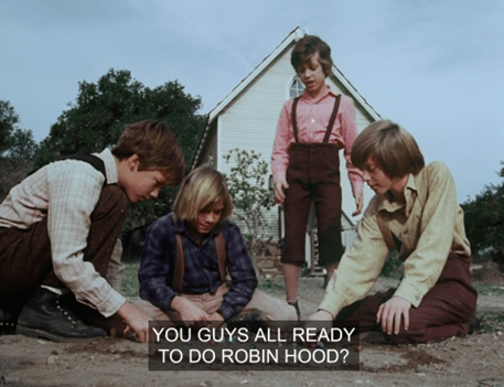 Also in the tree are Carl (Sanderson, not the Flunky) and the Kid with Very Red Hair. The boys are playing Robin Hood.