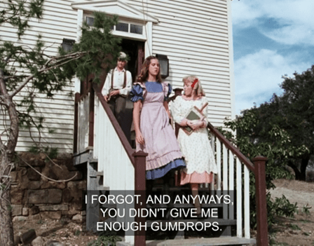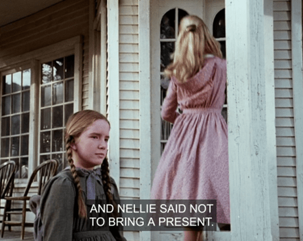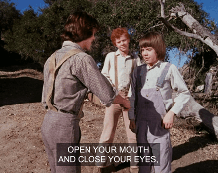 Mrs. Oleson departs to check on a roast (see, she does cook), and Nels mutters that when the kids’ teeth fall out, she can lend them her false teeth.