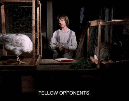 Olsonville is basically a reboot of The Election, except the anti-Olson party is made up of the town’s senior citizens led by a man named Lem McCary, who’s played by none other than Lew Ayres, the Paul Balmer of the original 1930 All Quiet on the Western Front.