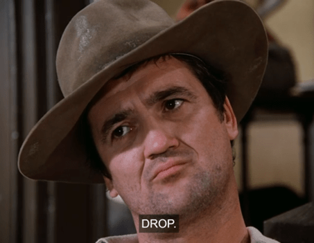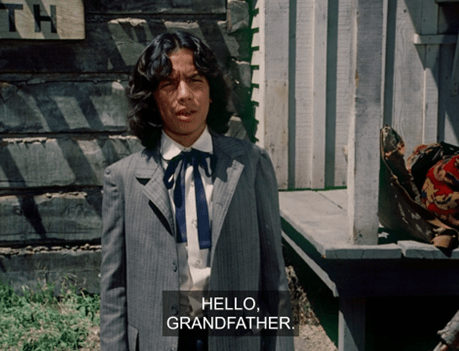 Then, in one of the strangest one-off moments the show’s given us so far, we see a crazy old man sitting on the Mercantile porch, playing an equally crazed quick-tempo version of “Turkey in the Straw” on the harmonica.
