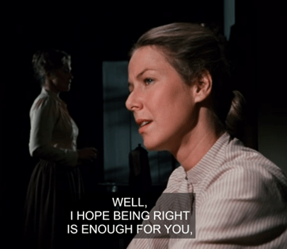 Alice does do something, then, running forward to extinguish her burning husband with a bucket of water and her apron.