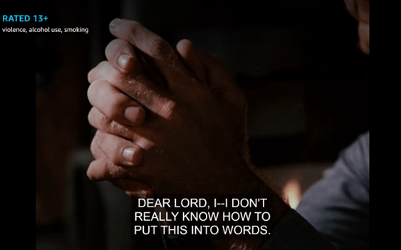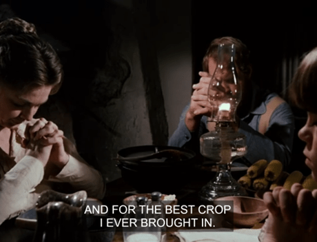 But as the camera pulls back, we see he’s just saying grace at the dinner table.