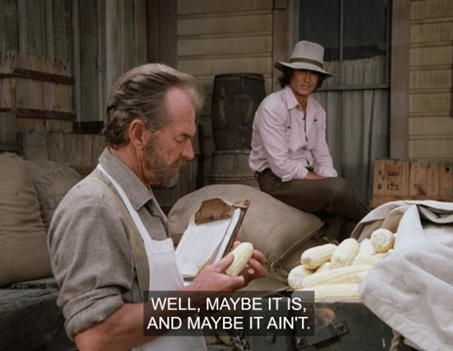 I mean, there were corn cobs on the table in the opening scene, but surely the lost crop is field corn, a far more valuable commodity. Plus, you shouldn’t eat too much corn anyways.