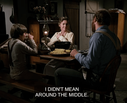 Actually, Caroline whoops and screams “I’ll bring a casserole!” (It’s unclear if this is anachronistic – “casseroles” in their modern sense didn’t really take off in the United States until the Twentieth Century, and in the Upper Midwest they quickly became known by the nickname “hotdish.” But I think the jury’s out on this one.)