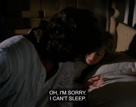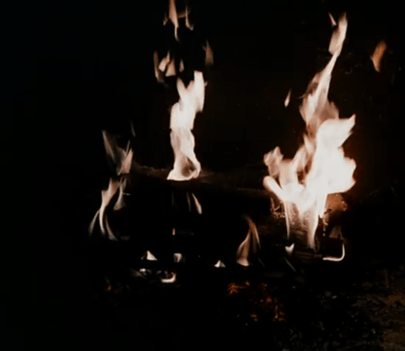 I won’t tell you who the director is yet, but his sick sense of humor should give him away. Because now he chooses to turn the camera away from these characters and their positivity . . . and instead points it into the fireplace, where a log is crumbling into ashes!