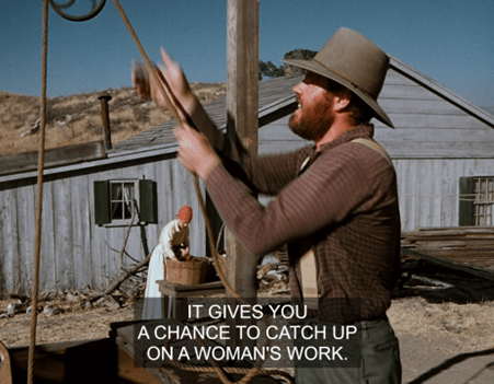 That gets them off on the wrong foot for sure. They bicker a little then, Garvey saying pulling stumps and the like is “man’s work – real man’s work. Glad there’s SOMETHIN’ I can do that you can’t.”