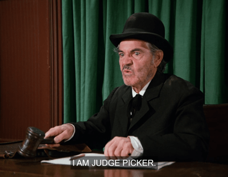 You’d be forgiven for thinking it’s Judge Picker – that’s what I thought the first several times I watched this one. (As we’ll see in a moment, it wouldn’t seem out of character for him.)