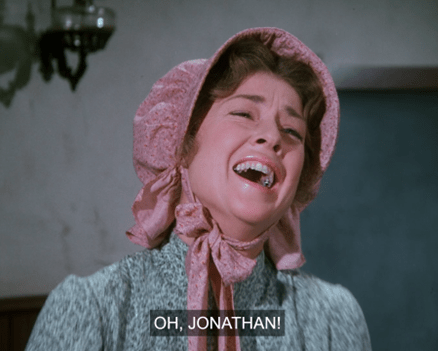 Oddly enough, Merlin Olsen always claimed he wasn’t much of an actor and more of a football player, but his acting never bothered me in the slightest, in that he disappeared in the role of Jonathan and never seemed behind the other, more experienced actors. I think this is the first episode to show Jonathan in a more negative light, after three appearances where he was nothing short of kind, reasonable and wise. Maybe they decided to let the audience get used to the replacement for Mr. Edwards before exploring him in a flawed portrayal.