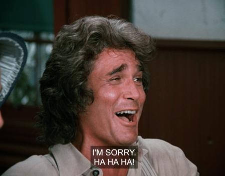 OLIVE: Yeah, you can tell that was a Mr. Edwards line. Can’t you imagine it? [as VICTOR FRENCH] “I said my crop was expandin’, woman, not m’middle, ha ha ha!”