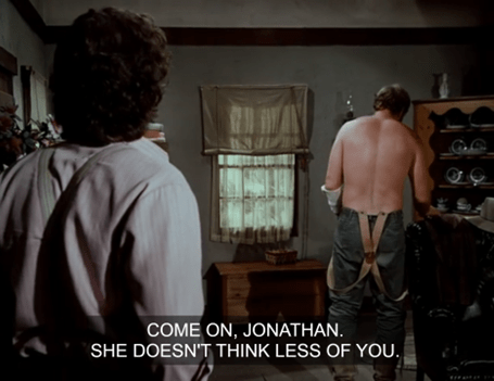Very bitterly, he says, “I guess you’d be less ashamed of your worthless husband if folks saw him out there doing a mule’s work.”