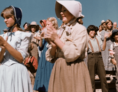 In the exhibition building, Caroline wins the pickling contest. Behind her, we get a good look at a very attractive lady with an exceptional figure we’ve seen wandering in the crowd several times by this point. In close-up, she’s a little older than I would have thought – another goddess to be added to the pantheon of Little House on the Prairie MILFs.