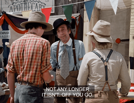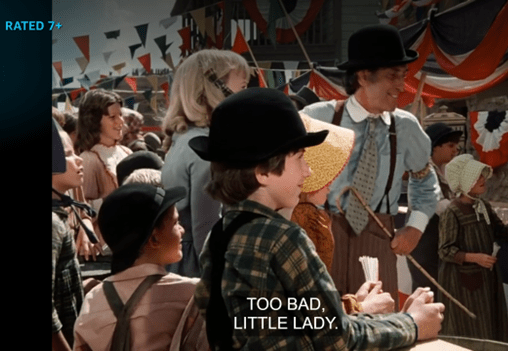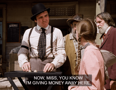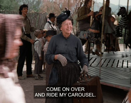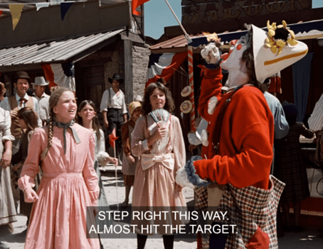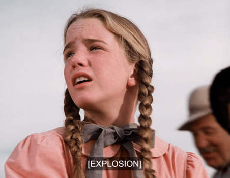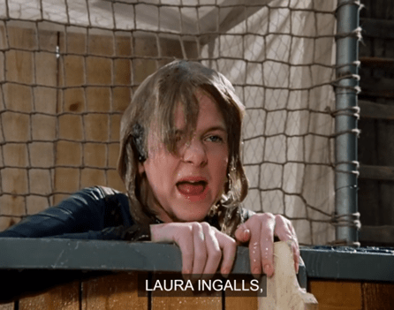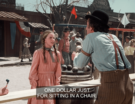 Carrie starts quacking that she hasn’t been on any rides yet, and Pa yells at Laura to go take her on one for fuck’s sake. (Paraphrase.)