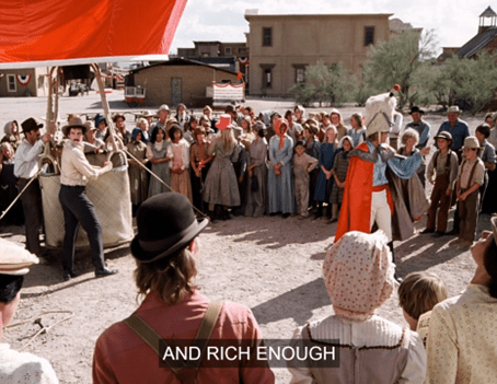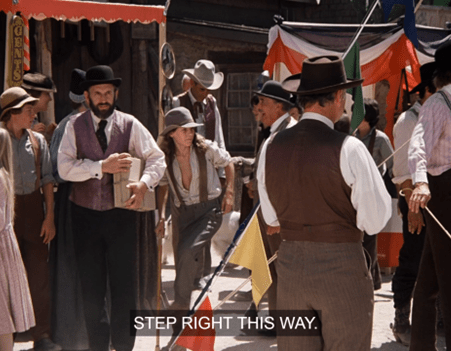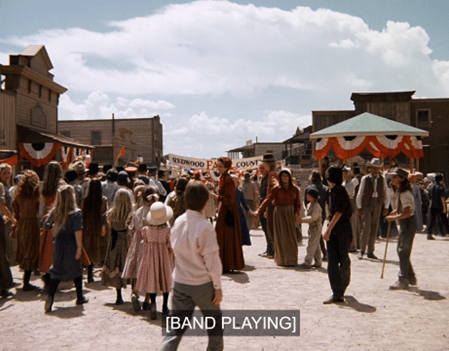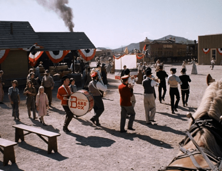 The band rounds another corner, and yep, we see in fact the whole town resembles both Springfield as seen last week and Deadwood, Dakota Territory, as seen in “Gold Country” last season.