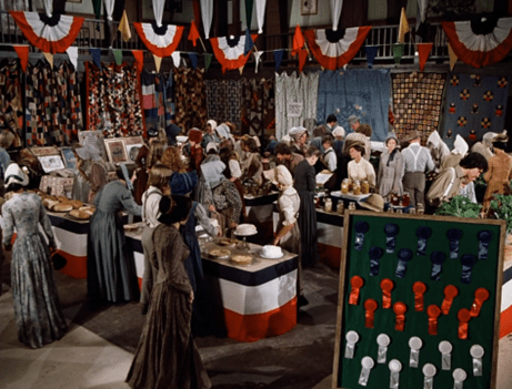 Meanwhile, Ma and Carrie arrive at the hall where they’re exhibiting the baked and canned goods. Looks quite proper.