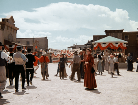 The out-universe reason for this, of course, is that all three episodes were filmed on the same set – Old Tucson Studios in Arizona, a shooting location for many Westerns throughout the Twentieth Century, including Gunfight at the O.K. Corral, The Bells of St. Mary’s, Cimarron, Rio Bravo, Three Amigos!, and Tombstone.