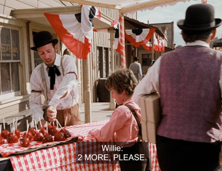 The group parades past a Kellogg Brothers saloon, which supports the theory we’re in Springfield, but could also mean we’re in Deadwood or at some other locale within the Kelloggs’ hospitality empire.