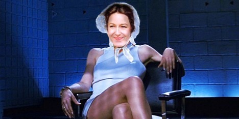 WILL: She should uncross her legs like in Basic Instinct to distract them.