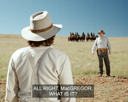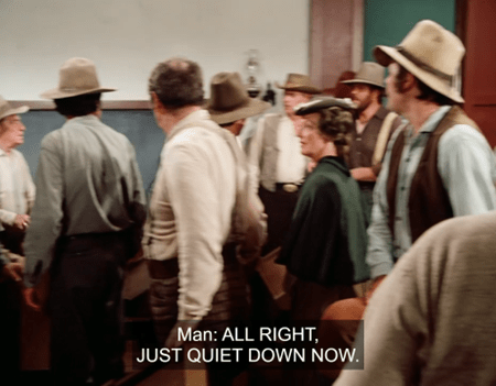 When our heroes get back to Walnut Grove, Benjamin informs them MacGregor’s called a town meeting.