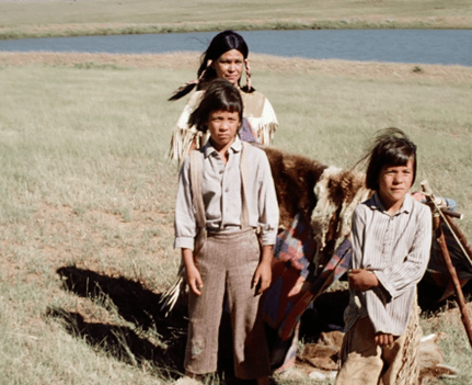Speaking haltingly but firmly, Long Elk says something to Little Crow, then walks around looking into the faces of his people: first the pretty girls, then the kids, then the old ladies.