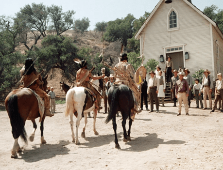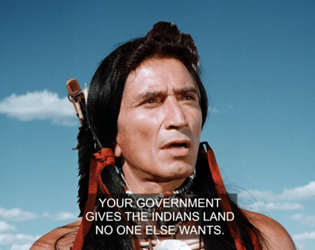 Little Crow states they have come in peace. The actor may look like Ricardo Montalbán, but he’s really Indigenous – of the Blackfoot people of Montana and Alberta (not related to the Dakota).