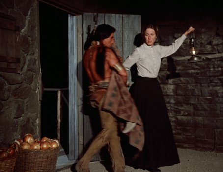 I have to say, while it must have been difficult to act the stilted “noble savage” writing typical of Western entertainments of the time, Nick Ramus injects a lot of personality into his line readings, and brings Little Crow to life quite beautifully. While soft-spoken and gentle, his character is also deadly serious, and has an enlightened, almost aristocratic “above it all” quality – no small feat for an actor to capture in a few fairly stereotypical utterances.