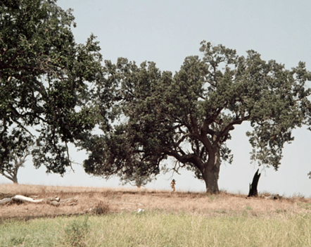 But when the wagon passes through, it reveals the youngish whitish Grovester racing down the bottom of the hill in the middle of the shot, without a cut. Where did he come from? It’s a good trick.