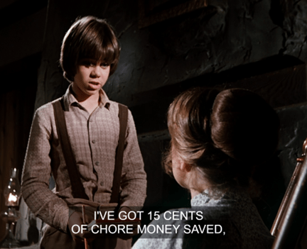 They open the box, and Caroline screams with joy when she sees it contains money – but Charles wearily points out it’s Confederate money and therefore worthless. (This is one story I actually remember watching as a child, and I remember thinking at the time that “Confederate” must be a synonym for “counterfeit.”)