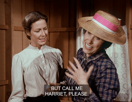 I believe this is maybe the first time Harriet is in the Little House… and I got to wondering… Does Willy ever set foot in the Ingalls’ house? I cannot picture it, if he does. (Of course Nels and Nellie visit in S1).