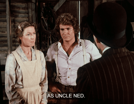 Mrs. Oleson also mistakenly refers to Uncle Ned as “Uncle Rich.” (That’s about as witty as this one gets, folks. Not Heinemann’s finest hour.)