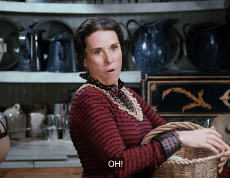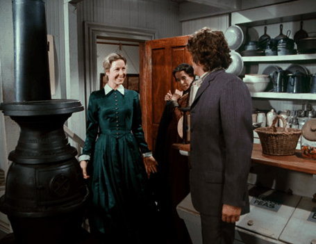 It is the first time Mrs. O comes inside, though she has been to the property a few times. The Walnut Grove School Board dragged her there to witness them apologizing to Ma for the Dumb Abel fiasco, and she caught Laura hiding Bunny when she drove out (ostensibly) to thank Charles for making (or fixing?) Nellie’s wheelchair. And of course she and Willie both were there to pick the Ingallses up for their camping expedition. But you’re right, they didn’t go inside.