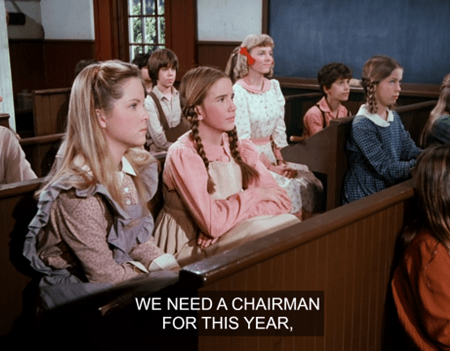 Nellie, chairperson emerita, rises and nominates “my dearest friend – Laura Ingalls.”